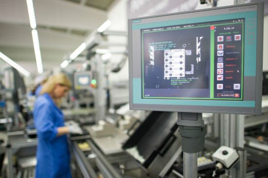西门子安贝格工厂工厂每年可生产约1500万件Simatic产品,按每年生产230天计算,即平均每秒就能生产出一台控制设备。这里的