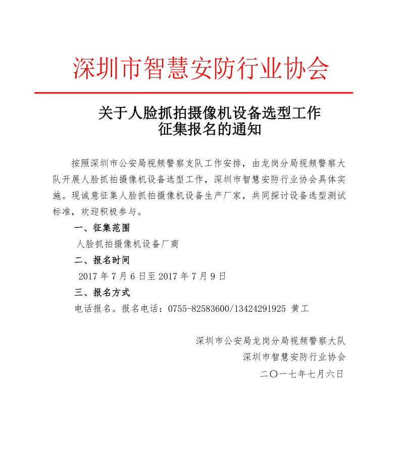 关于人脸抓拍摄像机设备选型工作征集报名的通知