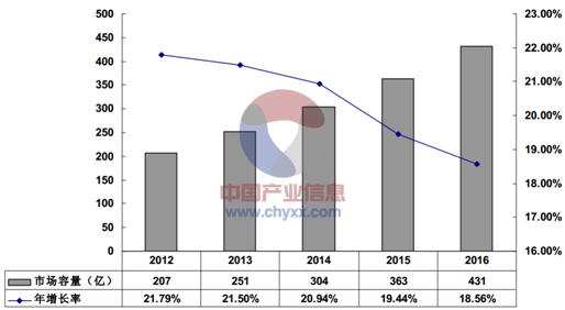 2012 年至 2016 年我国视频监控设备市场容量年复合增长率