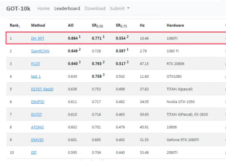 近日,大华股份基于深度学习的视觉目标跟踪算法,在通用目标跟踪评测集GOT-10k(Generic Object Tracking