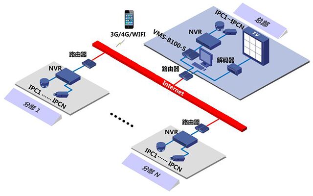 宇视通用小方案采用分布式云端部署,无需购置专业服务器,有效节省成本,实现电脑、手机客户端均可对远程云端设备进行实况浏览。该方