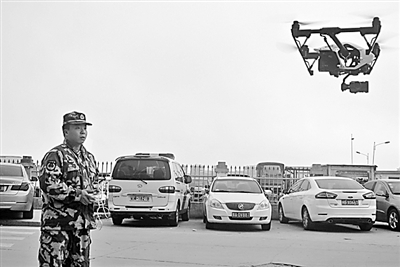 上图:无人机准备起飞前往港区执行高空监控任务。2月19日,福建边防总队莆田支队官兵通过无人机监控系统,对任务码头进行安保勘查。