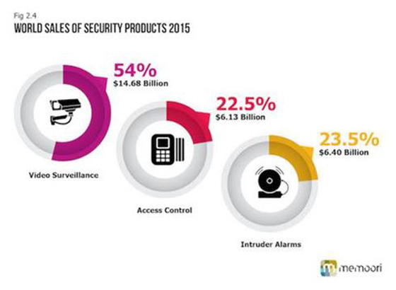 对于已经过去的2015年,安防设备市场呈现出增长的趋势,其中视频监控依然占据全球安防设备市场的大头。据最新的Memoori