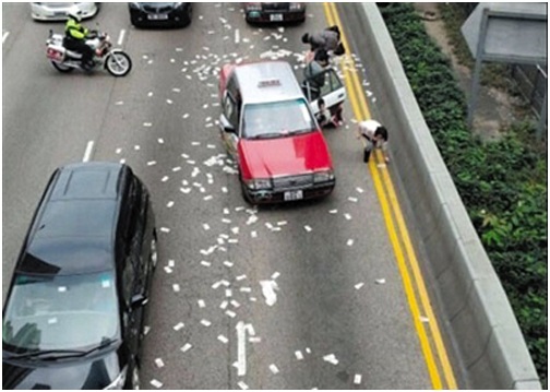 12月24日平安夜,香港湾仔“圣诞老人送钱了”不少市民在大街上捡钱!真的有这样的好事吗?其实不然,这是因为运钞车门没关好,这