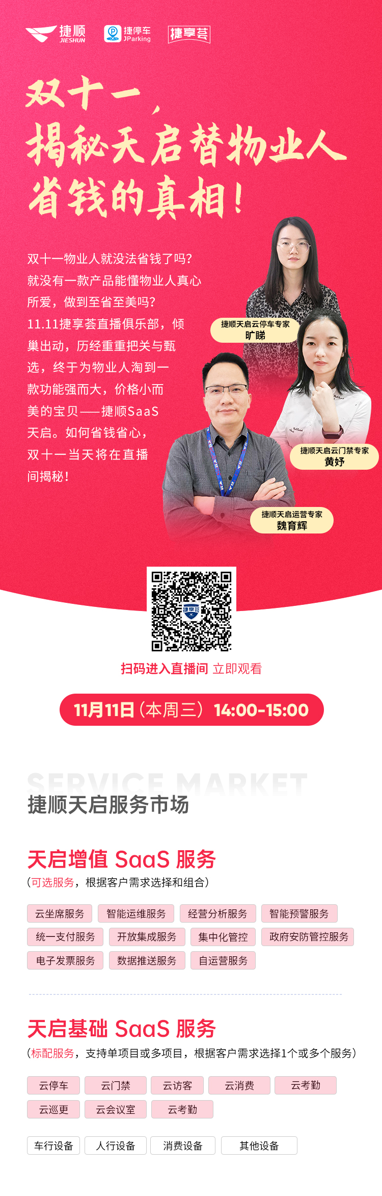 11.11捷享荟直播俱乐部,倾巢出动,历经重重把关与甄选,终于为物业人淘到一款功能强而大,价格小而美的宝贝——捷顺SaaS天启。
