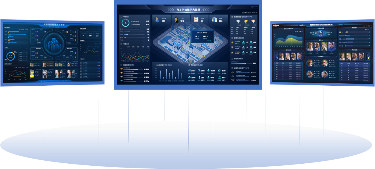 智慧校园管理平台基于综合管理、教育教学、智慧后勤(宿管)三大业务板块,提供不同维度的数据驾驶舱,满足多类校内角色的数据查看,同时为学校运营提供更多的数据支撑和手段。