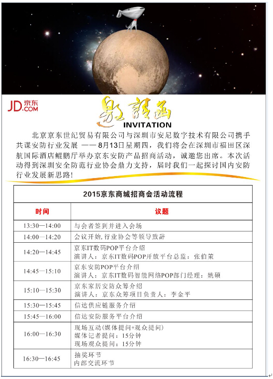 这是革新,意味着对传统的突破。其实,2013年行业不是企业已经陆续转向“电商大战”,各种新的商业模式层出不穷,却收效甚微。究其原因,安防的电商经营需要把握四点:专业的产品销售顾问,了解产品,具备良好的沟通技巧;完善的产品售后机制;快速的物流配套支撑体系;完备有效的配套营销体系,精于微博、促销、用户互动等;体系化的用户反馈搜集流程及反向流程,从用户、市场、研发进一步推动市场。为此,在深圳市安全防范行业协会大力支持下,北京京东世纪贸易有限公司和深圳市安尼数字技术有限公司携手共谋行业新未来。届时,全新的电商模式将进驻安防商圈,一场前所未有的行业饕餮盛宴即将来袭。您,准备好了没?
