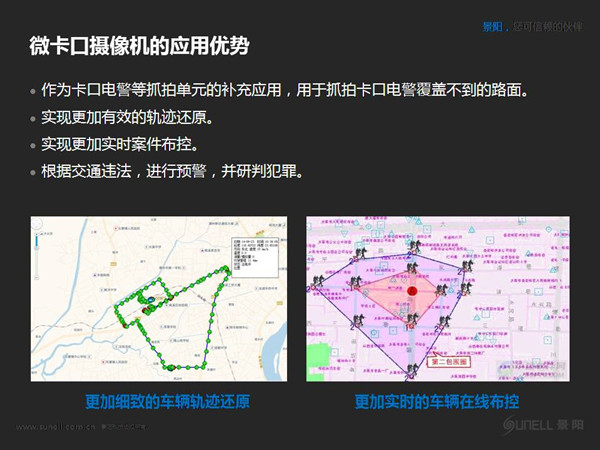 记者了解到,但趋势显示,未来的平安城市道路都可采用微卡口摄像机。电警和卡口主要部署在主干道,因此点位较少,还原出来的车辆轨迹可能不真实。若能在比较偏僻的城镇山村道路、城市辅道等安装。实现更加有效的轨迹还原。