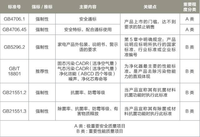 以下6 项是空气净化器现行的主要国家标准。除GB/T 18801-2008 《空气净化器》为国家推荐性标准外,其他均为强制性标准。可以看出国标覆盖领域还是非常全面的。
