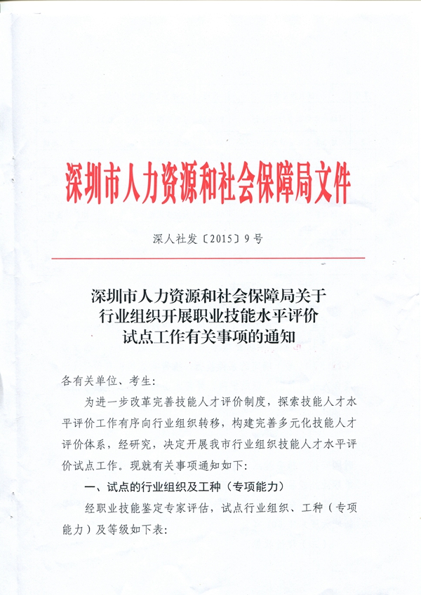 近日,深圳市人力资源和社会保障局印发《关于行业组织开展职业技能水平评价试点工作有关事项的通知》,确定了深圳市技能人才评价试点工作的行业组织、工种(专项能力)及等级。其中,与安防企业息息相关的“安全防范系统安装维护员”的技能水平评价工作将由深圳市视频报警安防行业协会(现已更名为深圳市智慧安防行业协会)承接。这意味着,我协会将在政府指导下,正式开展安防系统安装维护员评价工作。