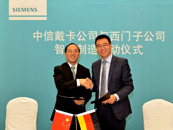 · 双方进一步推进战略合作伙伴关系,西门子将全力支持中信戴卡在汽车零部件行业数字化制造业务的发展
