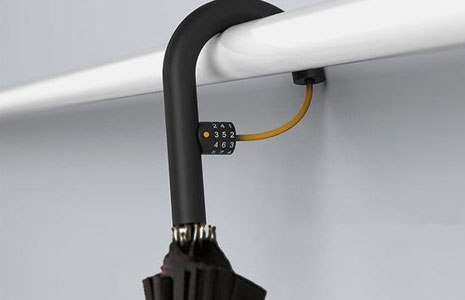 有时候放在架子上的雨伞会有很多把,所以自己的雨伞可能错误的被其他人拿走,而且有些人甚至可能将雨伞偷走。为了解决这个问题,设计师们就设计出一款Umbrellocked雨伞,其最大特点是柄位上设有一个密码锁,可以拉出来扣在柄的另一端,并形成一个密封的圆圈,原理与自行车锁相似。