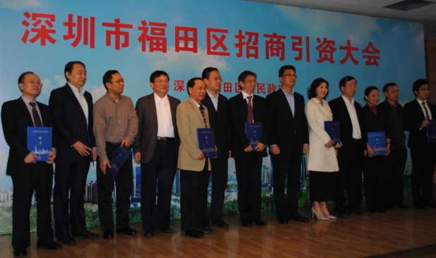 2015年11月26日上午,深圳市福田区招商引资大会在深圳举行,深圳市委常委/福田区委书记张文、深圳市副市长陈彪、福田区长肖亚非等领导,以及各街道办、各单位、各协会、媒体等200余人出席了本次大会。本次招商引资大会目的是为加大福田区招商引资工作力度,推动福田区招商引资工作迈上新台阶,吸引更多优质项目落户福田,从而加快辖区产业结构调整和升级。会上,深圳市中瀛鑫科技股份有限公司董事长陈文明先生被诚聘为深圳市福田区招商引资顾问。