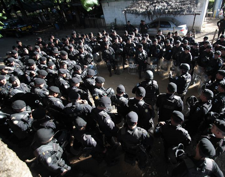 11月30日,在危地马拉城南部,警察在一所监狱内维持秩序。危地马拉一所监狱11月29日发生暴乱,造成至少17人死亡。据了解,发生暴乱的监狱名为“加拿大农场监狱”,位于首都危地马拉城南部。事发后,当地安全部队前往增援,目前局势已经得到控制。图为危地马拉一监狱发生暴乱,警方前往控制。