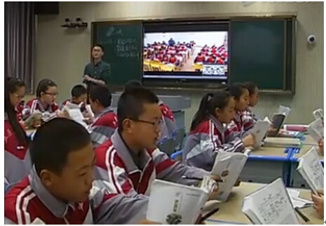 “自三峡七百里中,两岸连山,略无阙处。重岩叠嶂,隐天蔽日。自非亭午夜分,不见曦月……”大屏幕里二中的学生与三中教室里的学生一起,在老师的带动下整齐地朗读起了课文。