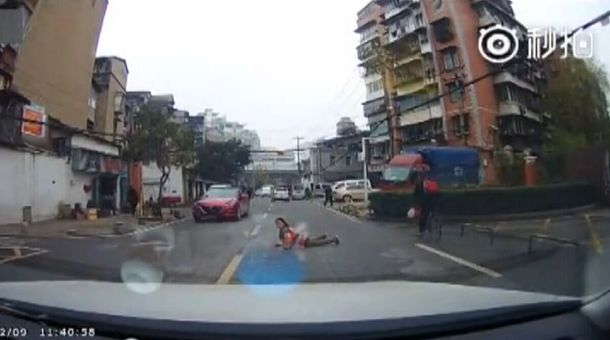 开出医院不到半分钟,李女士远远看到,一位身穿大红色衣服的大妈站在马路边,想过马路又不想过马路的样子。“这人好奇怪!”李女士心想着,特地减慢了车速。让她意想不到的事情发生了:离车还有七八米远的距离,大妈像慢动作回放般,慢条斯理地趴下了!