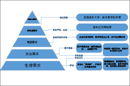 智慧养老是指利用先进的IT技术手段,开发面向居家老人、社区、机构的物联网系统平台,提供实时、快捷、高效、物联化、智能化的养老服务。借助"养老"和"健康"综合服务平台,将政府、医疗机构、服务商、个人、家庭连接起来,满足老年人多样化、多层次的需求。目前北京、上海、广州智慧养老在构建多元化、多层次服务供给体系同时,也初步形成智慧养老产业链。智慧社区、养老地产都是其重要环节,备受各界人士关注。毋庸置疑,和传统养老相比,智慧养老借助信息技术极大拓展需求响应的范围,丰富了服务广度和深度(详细见下图)。