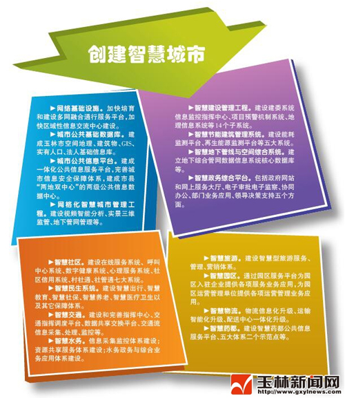据了解,玉林市创建国家智慧城市的目标主要是:通过创建智慧城市,智慧地推进玉林新型城镇化建设,全面提高城市规划建设科学性、城市管理高效精细化、完善公共服务、改善民生,促进产业转型升级,全面促进经济社会发展,形成智慧城市管理、幸福民生、产业转型升级框架;信息化全面支撑玉林经济社会快速、持续发展,城市运行状态全面可视化,城市安全实现全方位预防可控,城市运行管理决策实现有效支撑;民生得到进一步改善,社会公共服务实现均等便捷化发展,人民群众生活幸福感倍增,建成服务型政府;经济实现转型升级良性发展,基本建成智慧化的北部湾中心城市。