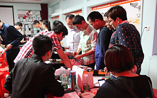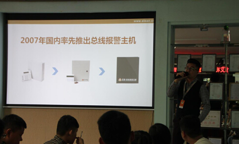 此次培训大会主要以技术培训为主,艾礼安的技术工程师、培训讲师以及销售精英人员都参与了此次培训的演讲。艾礼安技术主管杨顺鸿主要讲解了总线报警主机最新的系统应用。他对每一款总线报警主机及配件的基本参数和实际操作都做了详细讲解,为各位合作伙伴们解析了艾礼安总线系统的项目案例和总线系统的故障排除。他的演讲层次清晰,条理分明,短短数小时的培训在大家心中留下了深刻的印象。