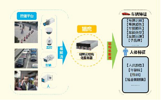监控视频经过猎鹰系统结构化处理后,可提取为利用价值非常高的目标特征信息,服务于上层业务和行业大数据应用。