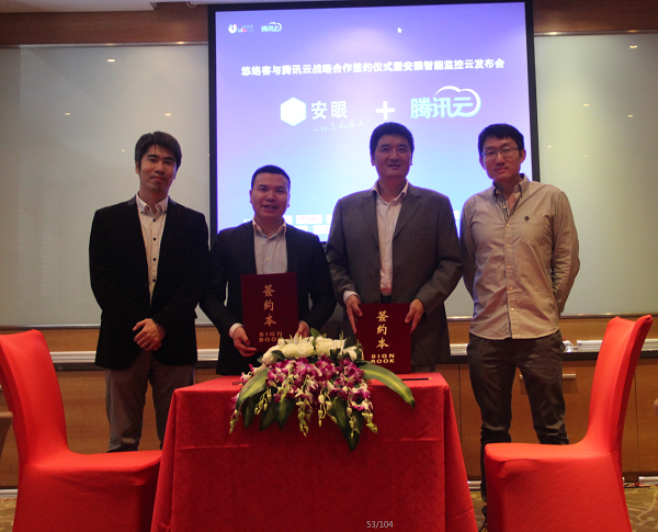 4月16日下午,悠络客&腾讯云战略合作签约仪式暨国内首家永久免费视频监控-安眼云平台发布会在深圳金茂万豪酒店隆重举行。悠络客与腾讯云公司签署了战略合作协议,双方将发挥各自专业领域资源优势,开放业界领先、永久免费的智能监控技术云服务,帮助传统安防厂商及开发者轻松构建各类智能视频监控交互应用,帮助各行业伙伴打造智能视频服务特色产品,并承诺全面永久免费 不用自建服务器,不用自己开发。安防厂商更可以通过加几行代码sdk集成便可轻松拥有无限智能视频功能,以零成本集成互联网先进智能视频监控技术到自己的产品中,最多一天即可完成,极大缩短开发周期及减少开发成本,真正加速”互联网+”安防 飞速发展。