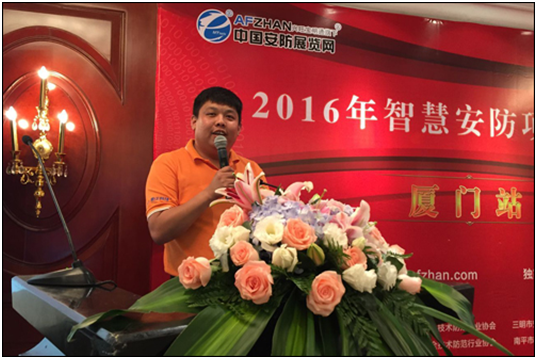 随后,系统集成商代表福建省索菲特智能工程有限公司总经理曾志春上台发言。就福建系统集成商现状与需求做简要分析,希望与更多名优安防企业建立合作关系,为建设更美好的未来共同努力!