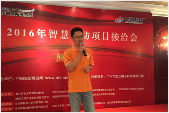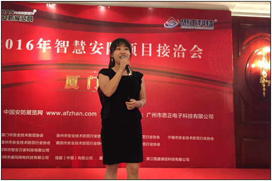 紧接着,会议进入“名优企业产品、技术分享”环节。众所周知,“2016智慧安防项目接洽会”举办宗旨在于围绕智慧城市建设需求展开,而智慧安防项目涉及视频监控、音频监控、消防报警、智慧小区、网络可视化、智慧停车等多个方面,且项目的落实并不只是一个简单的集合,还需各个系统环节有效融合,方能达到有效的服务效果!本次会议诚邀拾音器领域专家广州市思正电子科技有限公司、视频监控国际品牌佳能(中国)有限公司、联网报警运营服务商/智慧安全服务云平台深圳市智安万家科技有限公司、云端智能家居倡导者深圳威玛网电科技有限公司、智慧停车品牌领导者厦门路桥信息股份有限公司,五家从事安防不同领域的名优企业代表,带来企业特色产品与解决方案展示。现场有效的交流接洽实现了与地方安防工程商、集成商“零距离对接”的目的。通过互联互通,提出合理优秀的解决方案,达到真正智慧落地的效果!