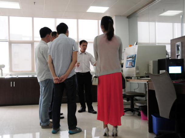 接着,董事长肖明超带领新钶电子(上海)有限公司总经理吴振轩以及新钶电子考察团一行参观我们WRT慧锐通科技园区,从展馆到测试实验室、研发部、生产车间等各个部门依次作了详细介绍。