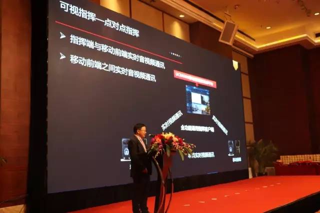 捷视飞通副总裁覃春来应邀参加论坛演讲,结合“可视指挥,智能掌控”主题,详细讲解了当下执法行业的移动可视化指挥的概念和意义。