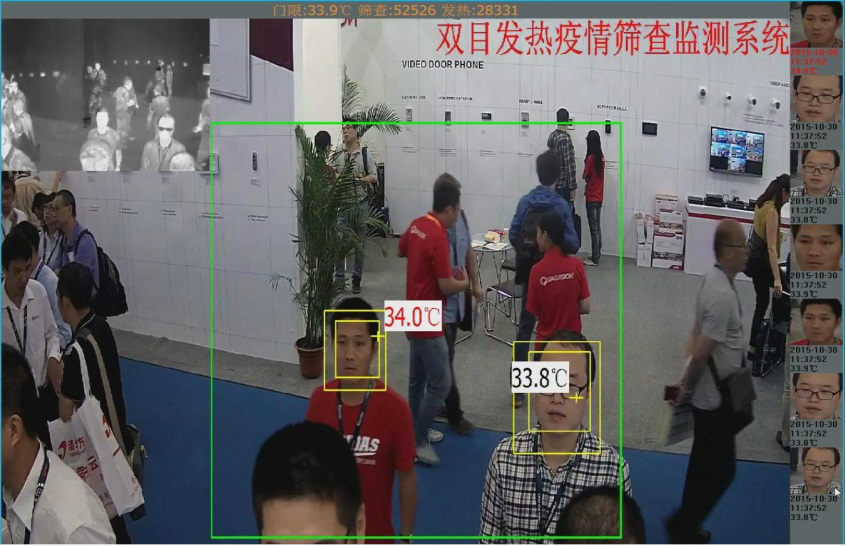 在流行性传染病爆发期实现早发现、早隔离,克服了传统的体温计、额温计、点温计和耳温计等仅针对个体测量,耗时多、易交叉感染等不足,从而可有效的控制疫情扩散,减少人员伤亡,非常适合于在机场、码头、车站、医院、商场、幼儿园、学校等人流量较大的公共场合进行体温快速排查。