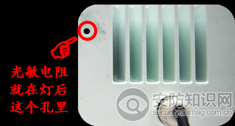 三、持续点亮方式补光:所谓持续点亮就是不用连接其它触发信号,只要一通电就一直亮或夜间一直亮(加装光控或者时控电路)的LED补光灯,有时也叫LED常亮方式补光。图2就是采用持续点亮方式补光,出现这种情况笔者分析是位于补光灯后面的光敏电阻被蜘蛛网等杂物遮挡(如图4),所以造成夏季早上8点之后还不关闭的现象。