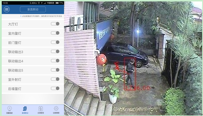 当别墅发生人员入侵时,墅安居智能视频分析技术会自动判别是否为人员入侵,并结合视频联网报警中心进行人工二次判断,实现对实时报警信息的准确判断,确保每一次业主接收到的报警都真实有效,为业主打造“零误报”安防系统,让别墅用户享受“免打扰”安防服务。同时,当报警事件发生时,墅安居会立刻启动本地现场声光报警、本地现场喊话警告、电话短信通知业主和物业保安及公安110,促使相关部门及时派警。并且系统还会将包含智能分析结果的报警现场图片发送到业主墅安居手机客户端,点击图片中的播放按钮即可查看报警视频,让业主实时了解案发现场情况。