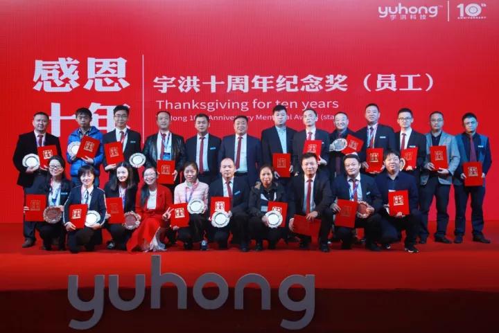 在这感恩的时刻,公司董事会向曾经和正在为宇洪的发展辛勤劳作、默默奉献的新老员工以及各位员工家属表示了衷心的感谢,并颁发了十周年庆纪念礼品。无论公司将来做到多么强大,我们都不会忘记一路相随、关心和支持宇洪的兄弟姐妹,你们信任的目光是我们困难时不退却、压力时不放弃的动力。获奖员工非常激动和兴奋,感谢公司领导的信任和培养,感谢宇洪公司提供的舞台和职业发展机会,并表示陪伴宇洪公司一路走来,收获满满,今后将加倍努力以回报公司,并祝宇洪公司的明天更加美好。