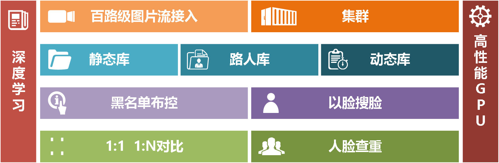 百路级人脸图片流接入能力,千万级日处理图片能力;